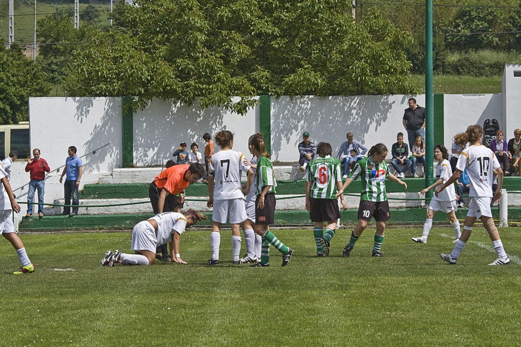 En el centro del campo las jugadoras del Abanto