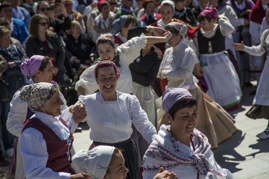 El grupo de danzas Enarak Dantza Taldea baila en honor a los novios