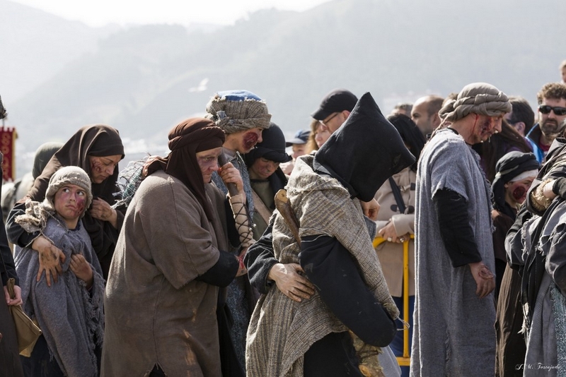 por las diferentes calles del pueblo llegan al Calvario. Jesús es