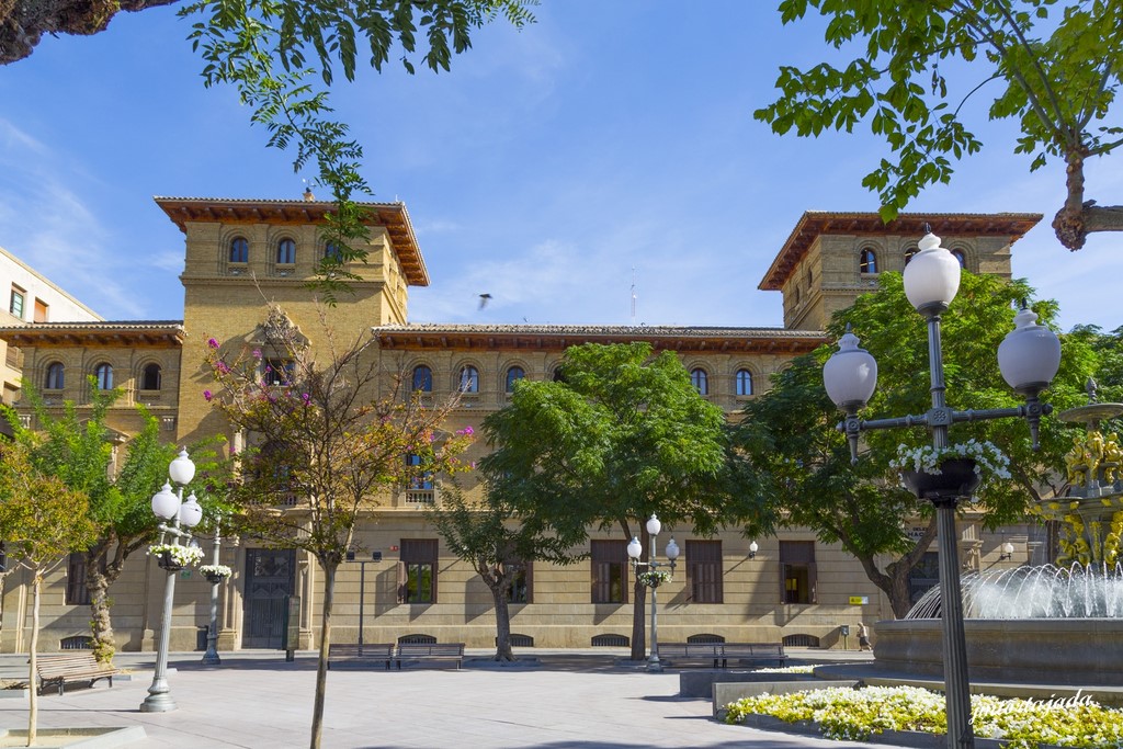 Esta es la plaza Lópes Allue. Aquí se encuentra la oficina de turismo y el museo pedagógico de Aragón.