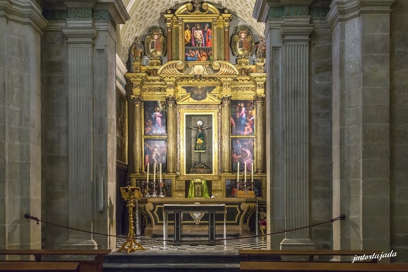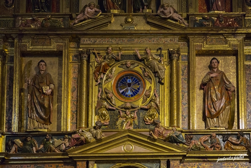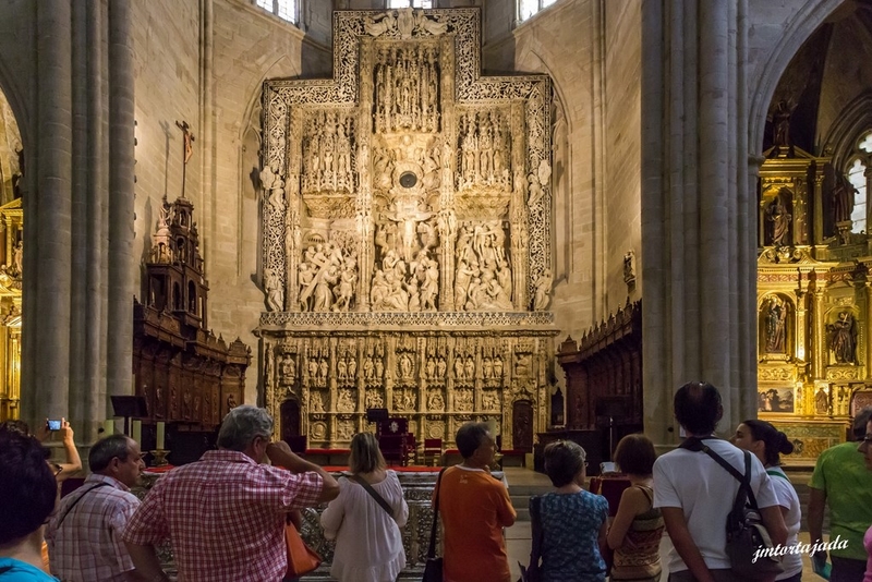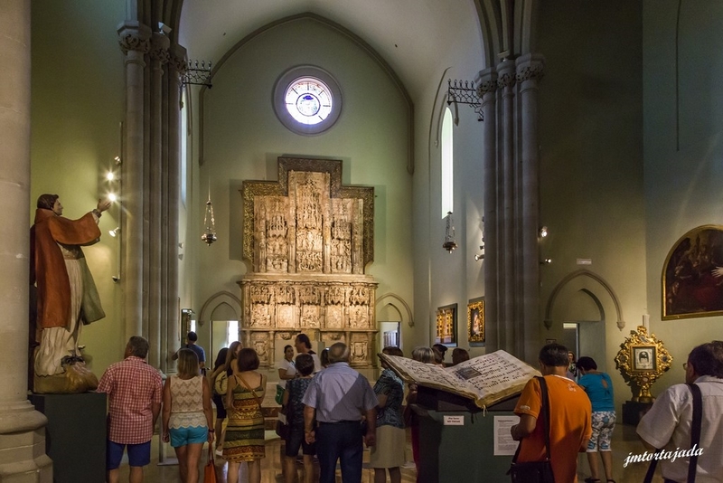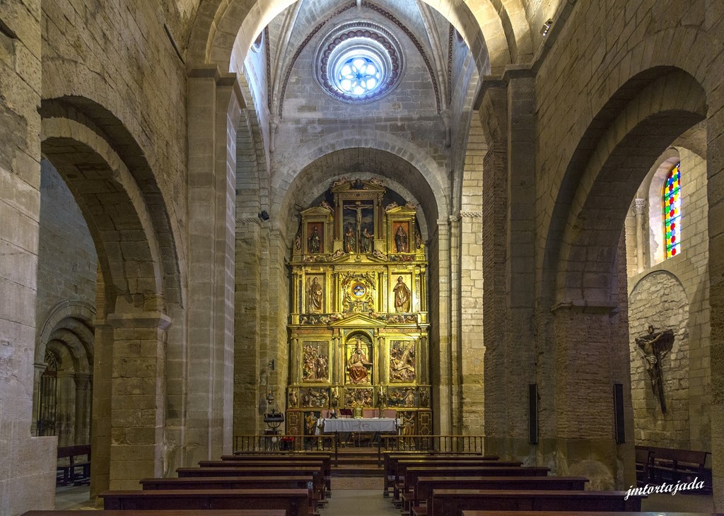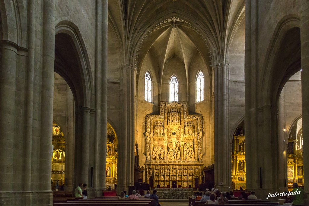Edificio gótico (s. XIII al XVI). Su retablo mayor, soberbio ejemplo de escultura renacentista española, esculpido en alabastro por Damián Forment entre 1520 y 1533, representa la Pasión de Cristo.