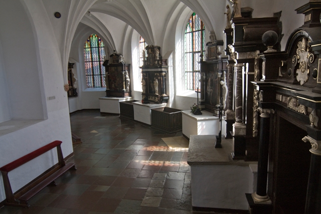 después de la guerra. El interior contiene mobiliario gótico, manierista