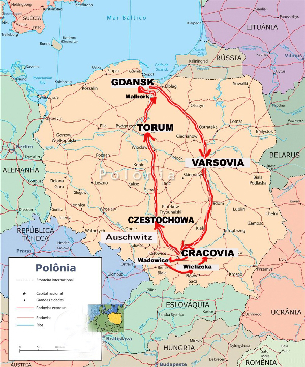 SELECCIONA CON UN CLIC LA CIUDAD QUE QUIERA VISITAR Salimos del aeropuerto de Barajas en Madrid con destino a Varsovia el 14 de Junio del 2009. DATOS DE INTERÉS Polonia es un país de Europa Central. La capital es Varsovia con 1.638.300 habitantes. Tiene una extensión de unos 312.685 kilómetros cuadrados. Su población actual es de unos 38 millones de habitantes. La lengua oficial es el Polaco. La religión mayoritariamente es la católica en el 90,7% . El recorrido que realizamos y en orden de visita fué el siguiente: Varsovia-Cracovia-Wadowice-Wielizcka-Auschwitz-Czestochowa-Torun-Malbork y Gdansk Todos los desplazamientos los realizamos en autobús