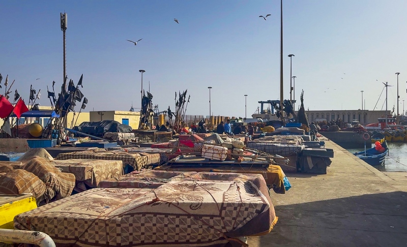 Comenzamos nuestra visita por el puerto pesquero. Este lugar es uno de los más peculiares y animados que se pueden visitar en Essaouira, lleno de pateras y barcos de pesca. Aquí encontramos numerosos puestos de comida donde podremos degustar pescado y marisco fresco a un buen precio.