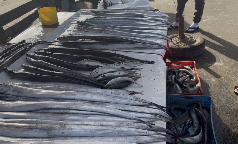 Paseando hacia la medina vemos a estas personas limpiando el pescado