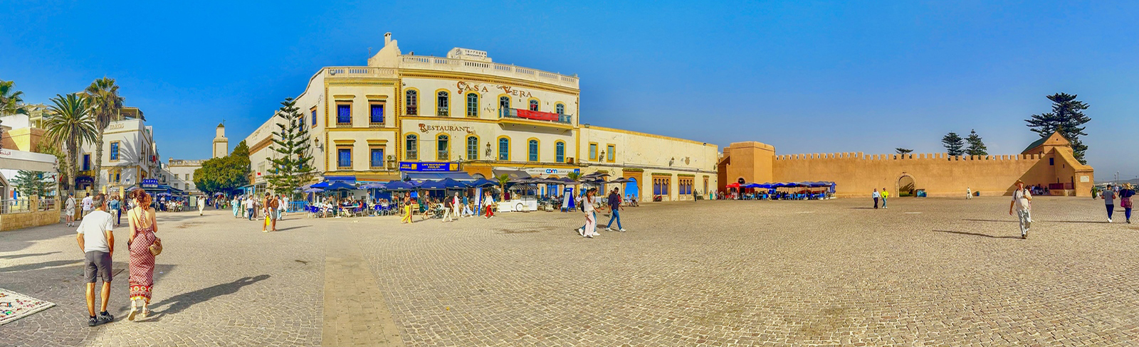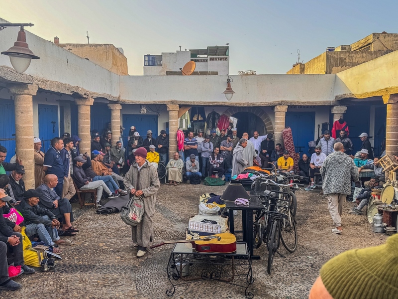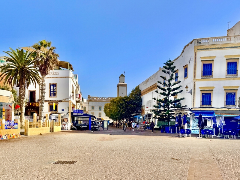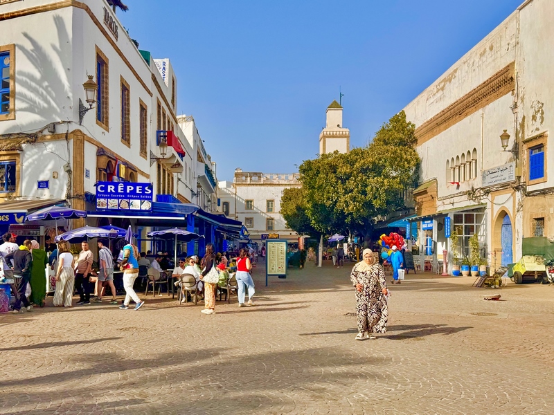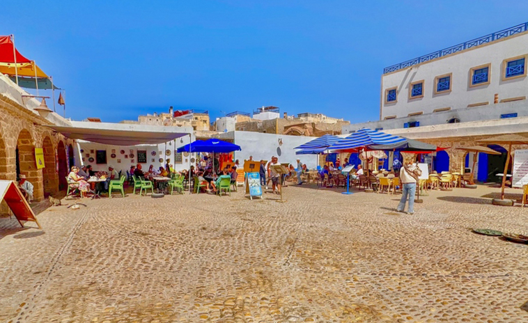 La plaza Moulay Hassan: Esta plaza tiene historia. Antiguamente era punto de encuentro para comerciantes y pescadores. Hoy, es el sitio ideal para empezar el día o para descansar después de patear la ciudad. Hay cafeterías, restaurantes con terrazas, y un ambientazo especialmente al atardecer. Además, aquí se celebra uno de los eventos más importantes de Essaouira: el Festival Gnaoua. Es un festival de música que reúne a artistas de todo el mundo, mezclando música tradicional gnaoua con jazz, reggae y más.