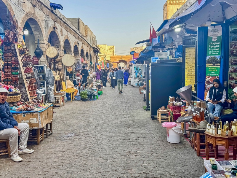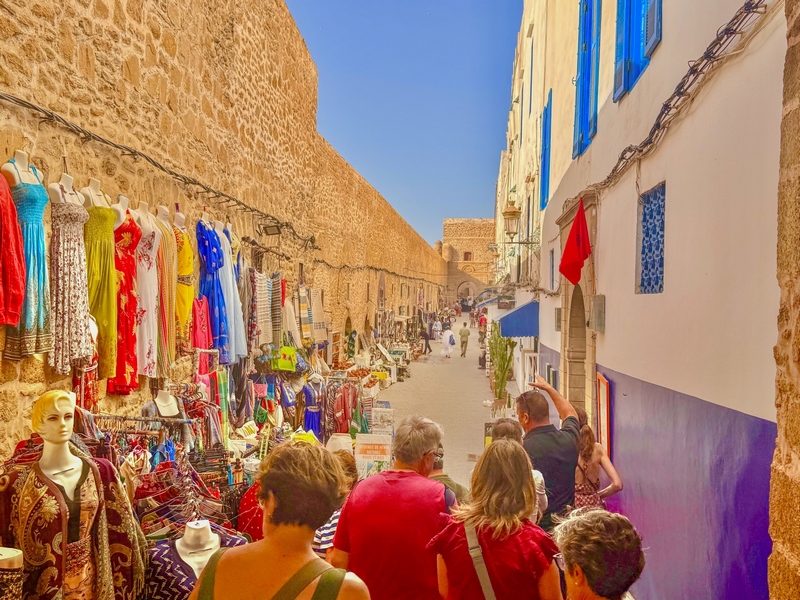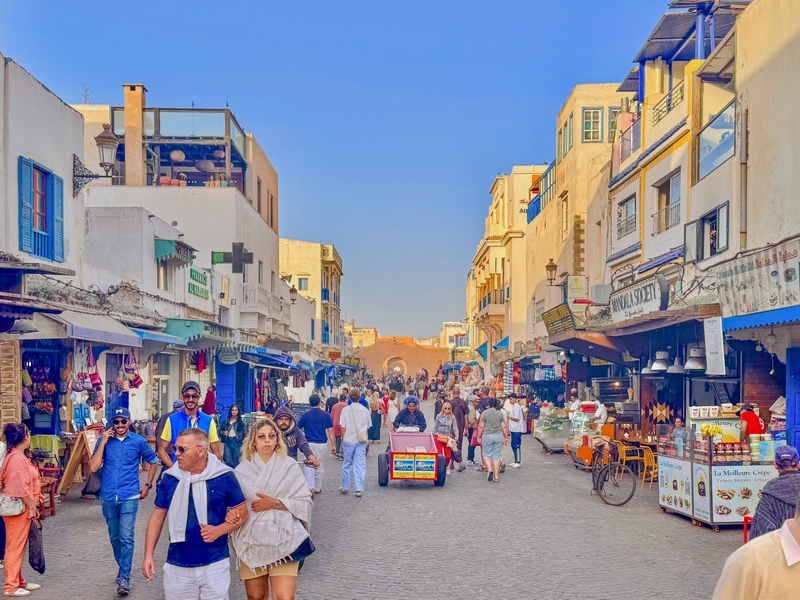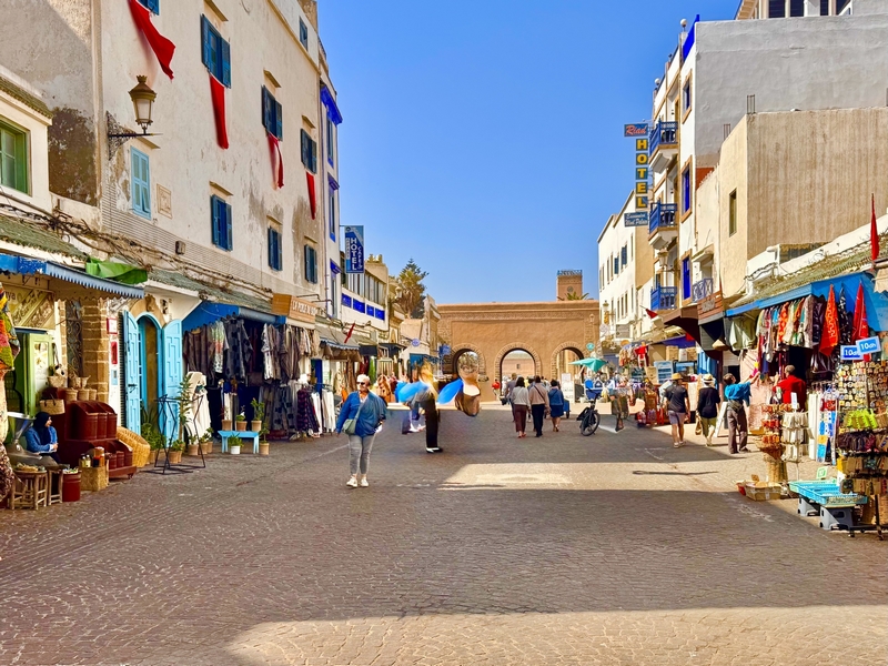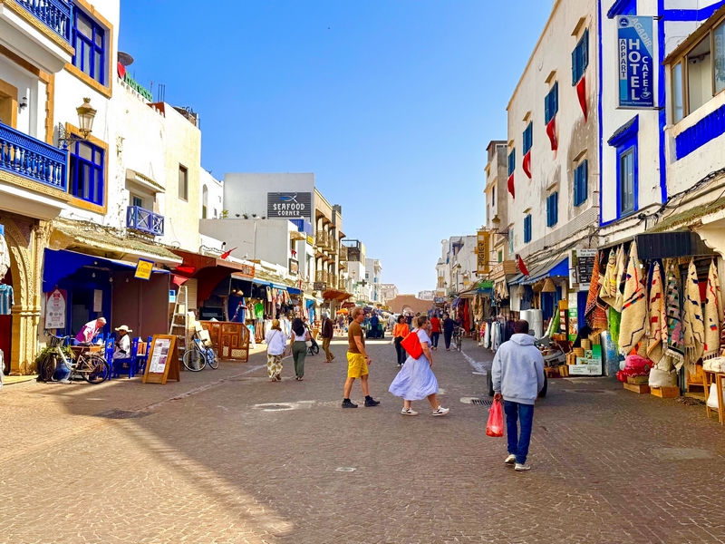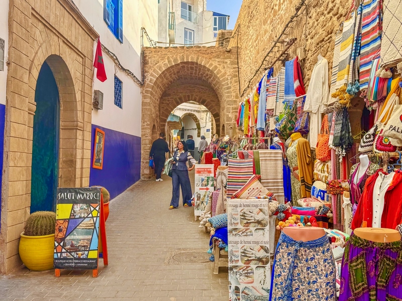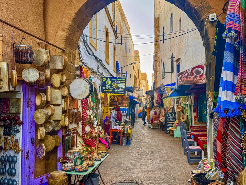Essaouira es una ciudad costera del Atlántico que ofrece mucho más que sol y playa. Con una población de unos 80.000 habitantes, esta ciudad ha sido testigo de una rica historia, que se refleja en su arquitectura y cultura. Además, Essaouira es conocida por ser un lugar de intercambio comercial y cultural, lo que ha creado una atmósfera vibrante y cosmopolita. Su medina, Patrimonio de la Humanidad, es uno de los principales atractivos turísticos de la ciudad. Sus murallas, fortificaciones y callejuelas empedradas, estrechas y laberínticas, la hacen un auténtico laberinto lleno de historia. Su medina es muy diferente a la de Marrakech, y conserva una atmósfera más tranquila y auténtica compuesta por amplias calles llenas de galerías que dan paso a talleres de artesanos, pequeñas tiendas de todo tipo, cafeterías y restaurantes.