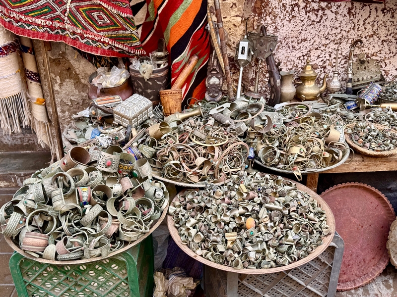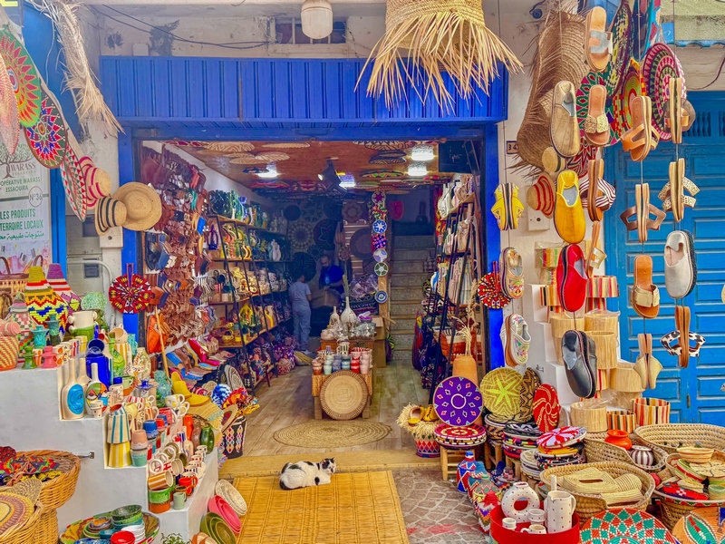 La medina está llena de tiendas de artesanía que es una fusión entre las culturas que han poblado esta tierra. Hay muchos productos pensados para turistas, pero si buscas un poco encontrarás verdaderas joyas de orfebrería o madera de tuya. También vale la pena comprar productos derivados del aceite de argán que se extrae en las regiones cercanas.
