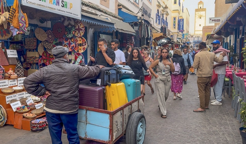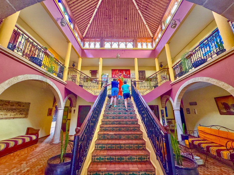 Trasladan en carros las maletas a los hoteles, la medina es totalmente peatonal, no hay vehículos. La oferta de hoteles es muy amplia. Los riads de la Medina son los que tienen más encanto, con una decoración tradicional marroquí o hippie. como nuestro hotel