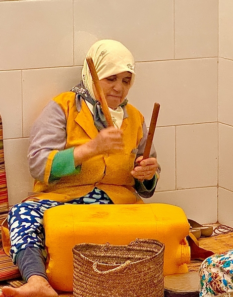 Cuando falta media horita, realiza una breve parada en una de las muchas cooperativas de argán que hay en el camino. La mayoría de estas cooperativas son de mujeres, que os explicaran y os enseñaran el proceso de extracción del aceite de argán y os mostraran productos cosméticos y alimentarios que elaboran con el preciado líquido. La verdad es que desconocíamos totalmente la producción alimentaria y nos sorprendió muy gratamente el amlou, una pasta para untar a base de argán y almendra. De hecho, para los amantes de la Nutella, creemos que es un competidor a la altura. Las mujeres cuando nos ven dejan de trabajar y comienzan a tocar instrumentos de percusión.