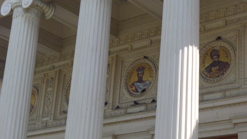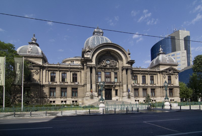 Frente al museo se ubica otro gran edificio. La Caja de Economía, un bello ejemplo de los imponentes edificios públicos de Bucarest .