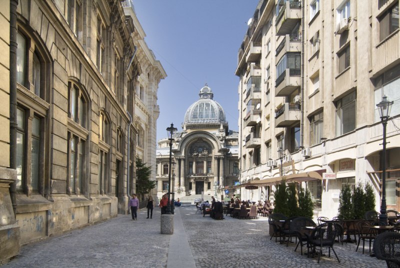 Aquí mismo se encuentra un Arco de Triunfo en la impresionante Avenida Kisseleff, aún más largo que la Champs Elysées y en que, en la primavera, puede admirar le esplendor de los árboles florecidos. A pesar del plano tan extenso de reconstrucción de los años '80, Bucarest queda una ciudad de parques, lleno de verdura, agradable, con cafés abiertas en las aceras en verano y barcos de placer en los lagos y ríos que le transcorren. Situada al sur de los Cárpatos, en el centro de la región histórica de Valaquia y a tan solo 65 kilómetros por carretera de la frontera búlgara, es considerada unánimemente como una de las ciudades más importantes de Europa del Este. En sus calles y casas se concentran más de 2 millones de ciudadanos, dando lugar a la población más grande (y con diferencia) de todo el país y a la sexta ciudad de la UE por número de habitantes.Si miramos hacia el norte siguiendo la calle Victoriei, encontraremos la Plaza de la Revolución, en la que se halla un monumento a los caídos en la revolución de 1989. Y enfrente de la plaza se encuentra el Museo de Arte, que contiene colecciones de arte rumano de todas las épocas complementadas en ocasiones con exhibiciones temporales de arte o de corrientes artísticas de otras nacionalidades y épocas.
