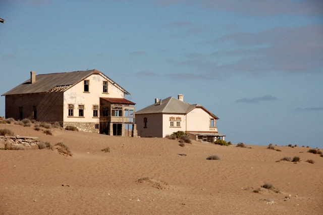 Visitamos la ciudad de Kolmanskoppe, conocida como la ciudad fantasma. Fue hace tiempo el punto principal de la brillante búsqueda de diamantes que atrajo a miles de buscavidas a esta aislada zona. Abandonada cuando los ricos yacimientos se agotaron, sus edificaciones hoy vacías, algunas restauradas y otras invadidas por las ardientes arenas del Namid son testigo mudo de uno de los periodos más vividos de la historia de Namibia.