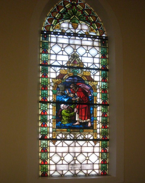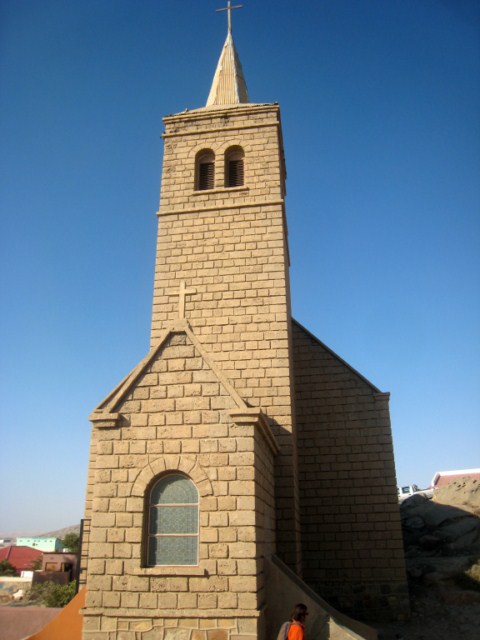 Fue diseñada por Albert Bause que plasmó la influencia victoriana que había visto en el Cabo, y la cristalera de colores que hay sobre el altar es una donación del propio kaiser Guillermo II