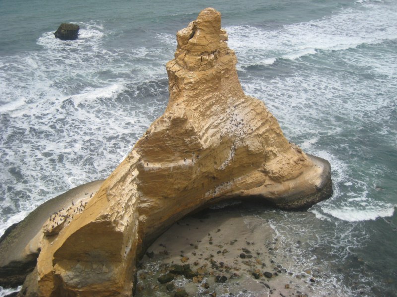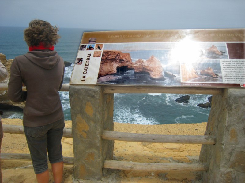 Llegamos al camino que nos acerca al mirador de la Catedral. La catedral es una formación rocosa causada por la erosión del mar y el viento. Tiene una forma cóncava que hace recordar a las cúpulas de las catedrales. Se localiza entre las playas Yumaque y Supay. En el interior de la catedral viven algunos gatos marinos o chingungos, así como algunas aves marinas.