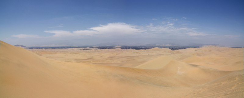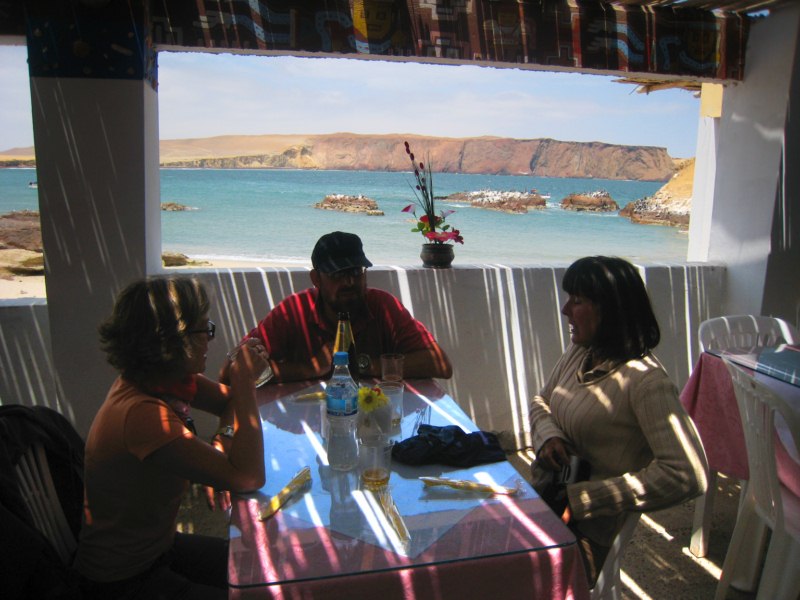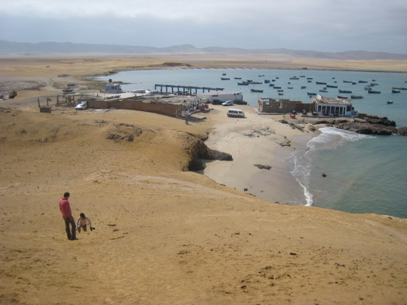 PARACAS, ISLAS BALLESTAS E ICA Salimos en viaje nocturno en autobús desde Arequipa a la ciudad de Paracas. Bajamos cerca de Pisco. Nos estaba esperando el dueño del hotel Pirata de Paracas con su coche, para trasladarnos. Nos acomodamos y contemplamos estas vistas desde la terraza