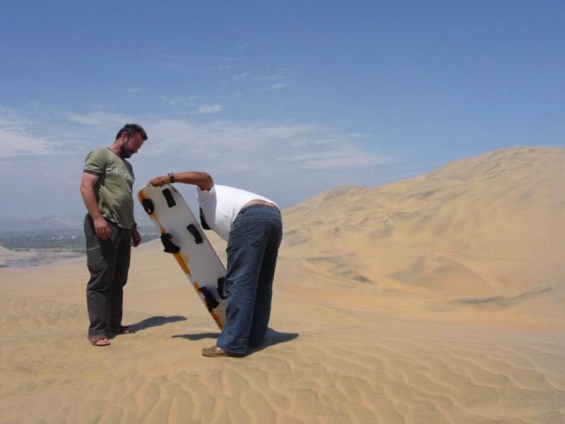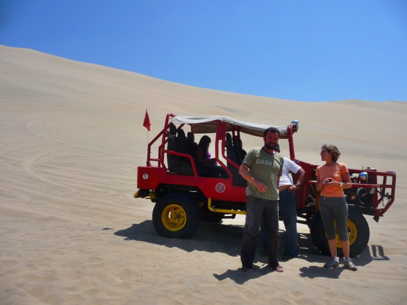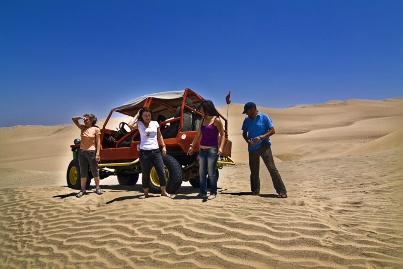Contratamos un paseo en carros areneros por el desierto de este bello lugar. Este paseo extraordinario nos lleva a conocer las dunas y el inmenso desierto de Ica . Estos carros van en velocidad (media o alta) subiendo y bajando las hermosas dunas en donde también practicamos el deporte de tabla en arena conocido como Sandboarding.