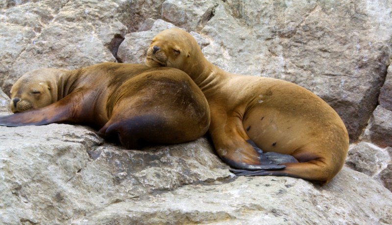 Pasamos cerca de la playa donde se encuentra repleta de lobos marinos hembras en momento de reproducción.