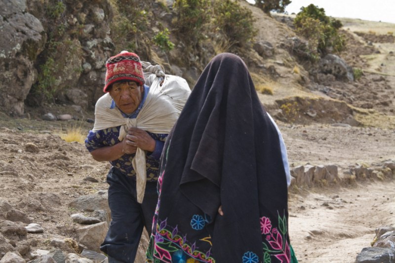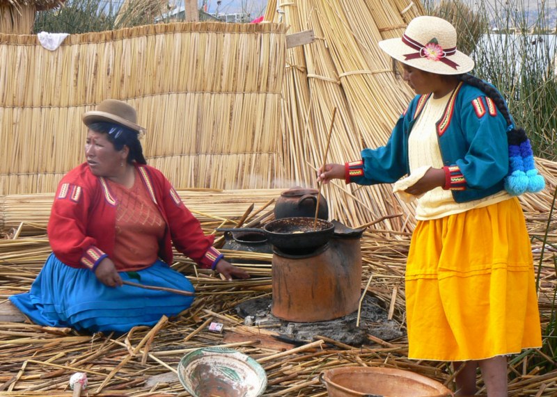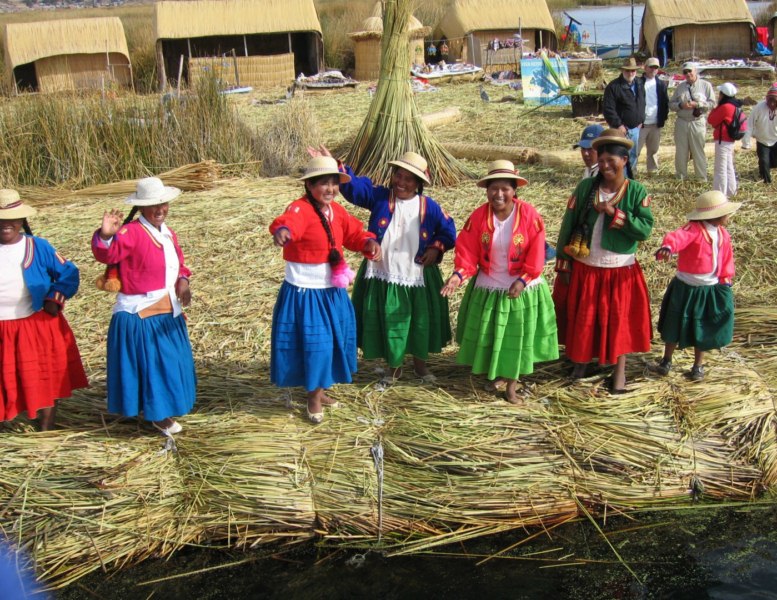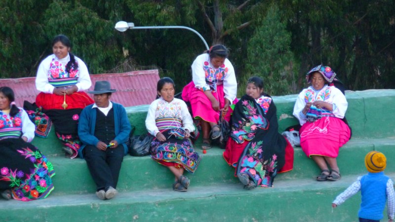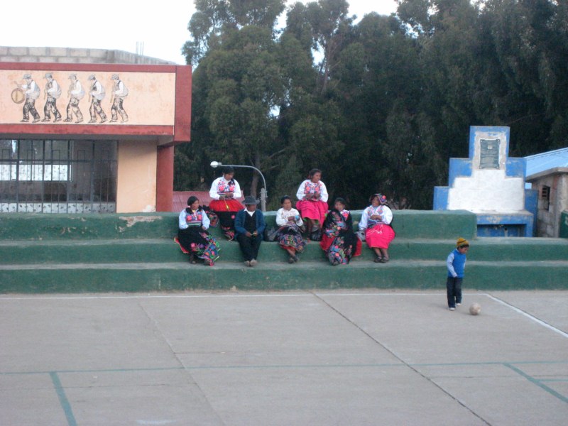 En ella se encontraban varios jóvenes con sus trajes típicos de la isla. Los gorros dependiendo del color hacen referencia a su estado de casado o soltero. También es muy típico que los hombres se dediquen al punto con agujas. Forman una sociedad fuertemente endogámica , casándose raras veces con personas ajenas a Taquile, y siguen manteniendo una cultura bastante tradicional.