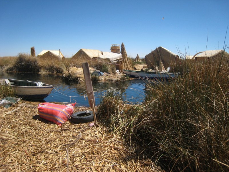Las balsas construidas con la totora son de lo mas originales. Nosotros paseamos en una de ellas y nos acercamos a otra de las islas. Aprovechamos para fotografiar.