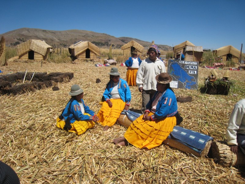Nos sentamos y escuchamos la explicación sobre la construcción de estas islas flotantes.