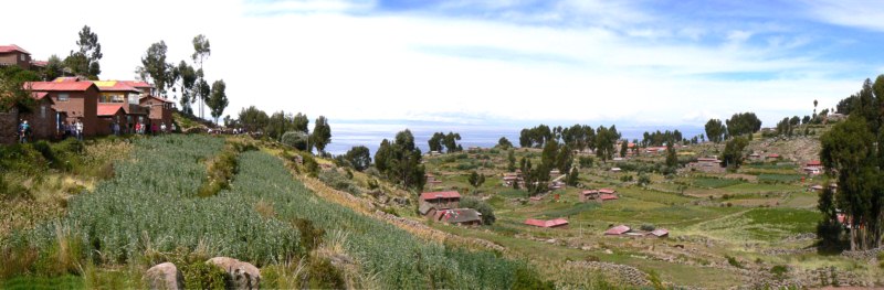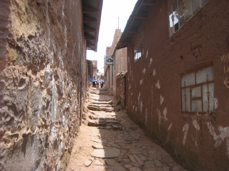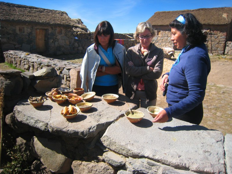 Ubicada a 3.817 m s.n.m., Amantaní tiene una extensión de unos 9 Km2. La flora del lugar se caracteriza por la presencia de plantas arbustivas como la muña, kantuta, salvia y tola. En la isla habitan ocho comunidades que se dedican especialmente al cultivo de papa, maíz, oca, quinua, habas y su artesanía más representativa está constituida por la textilería y el tallado en piedra. Nos estaban esperando las mujeres para darnos la bienvenida. Nos repartieron entre las diferentes familias para hospedarnos hasta el día siguiente.