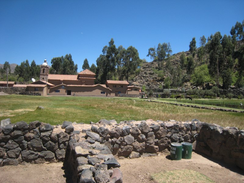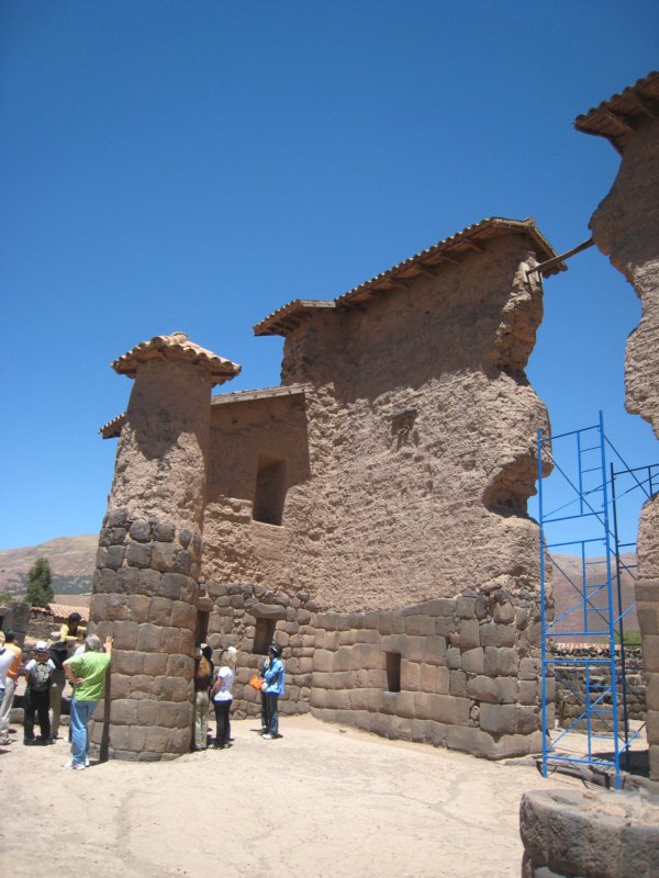 Llegamos a Raqchi, conocido porque en sus alrededores encontramos restos del Templo del Dios Wiracocha. Un magnífico ejemplo de la arquitectura inca. Se puede observar el dominio que tenían en la mezcla del barro y la piedra.