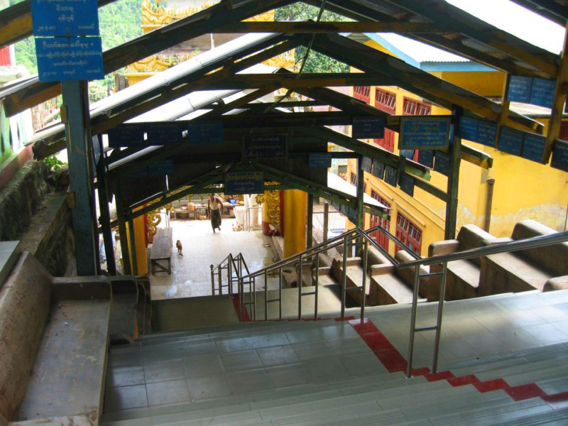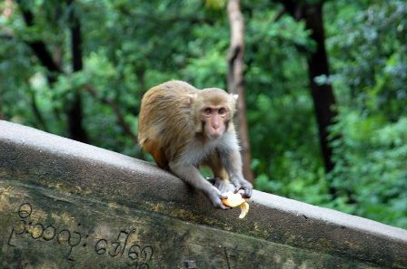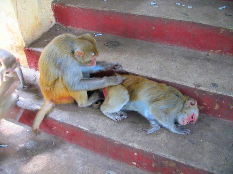 Hay que subir 777 escalones para llegar a la cima. Hay muchos monos pequeños. Estos nos acompañaban. Nosotros sólo pudimos ascender un tramo, pues estaba cortado por desprendimientos. Estaban de reparaciones.