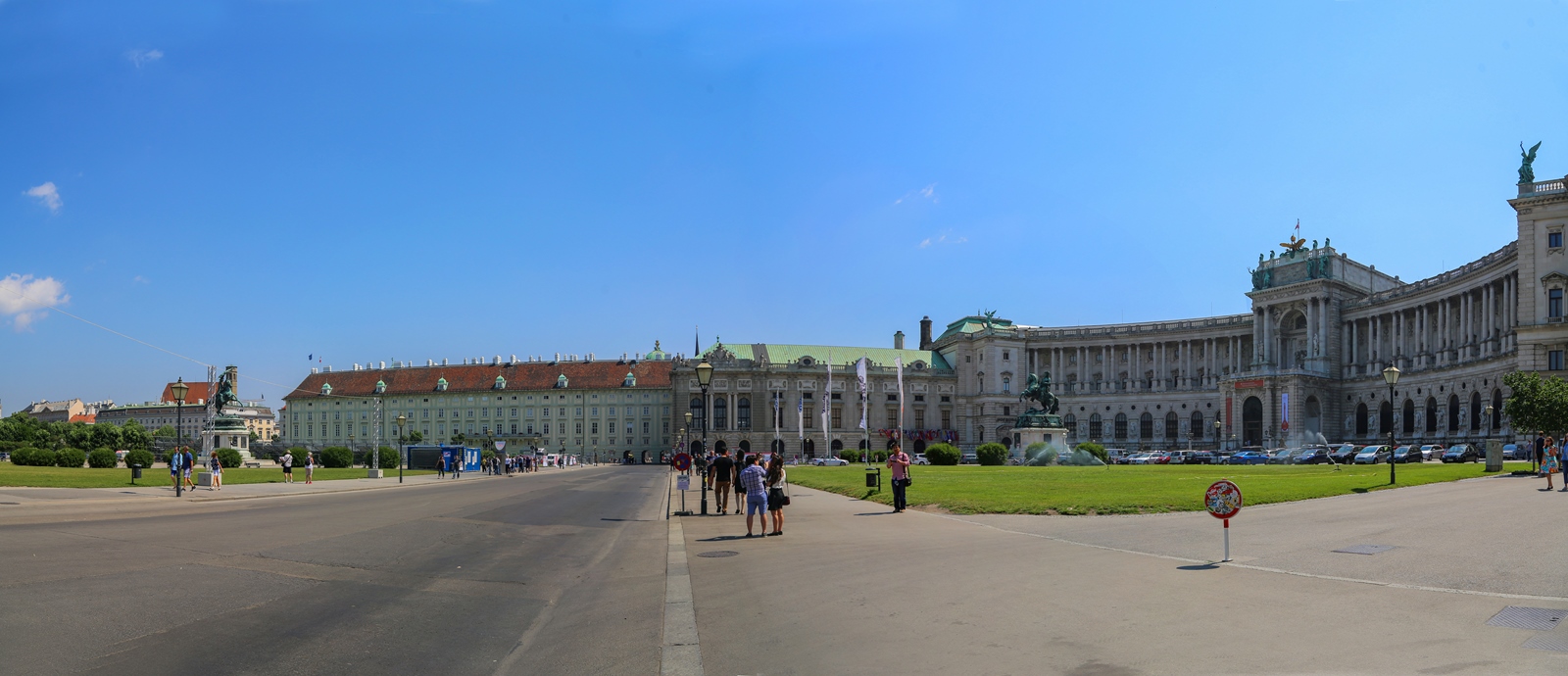 En la explanada donde se encuentra la fachada principal del Palacio Imperial se encuentra un monumento ecuestre y al fondo se pueden ver parte de la fachada del edificio del Ayuntamiento