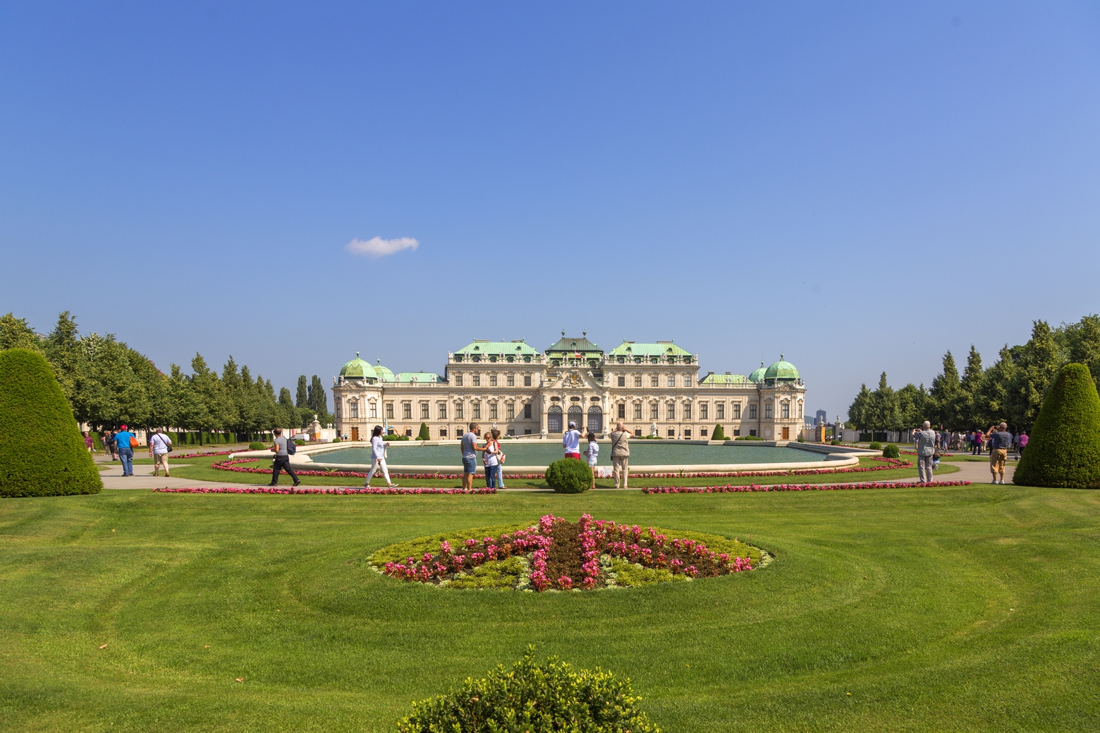 Para terminar nuestra visita en esta gran ciudad visitamos los Palacios de Schönbrunn y el Palacio Belvedere. Palacio Belvedere. El Palacio Belvedere (Schloss Belvedere) fue construido como residencia de verano del Príncipe Eugenio de Saboya. El conjunto lo forman dos palacios unidos mediante un enorme jardín francés. En el punto más alto del jardín se encuentra situado el Alto Belvedere, edificio principal del conjunto arquitectónico que disfruta de una fachada más elaborada. El interior del Belvedere decepciona bastante a los visitantes que esperan ver un palacio. Sólo se pueden ver decoradas la capilla, el hall de entrada y el Salón de Mármol. El resto de las estancias, faltas de decoración, muestran colecciones de pintura de la Galería Austríaca, desde la Edad Media hasta nuestros días, como si se tratara solamente de un museo.