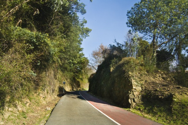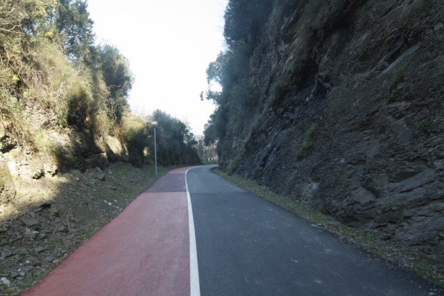 Tomamos esta carretera preparada para pasear y como bidegorri que transcurre a través de la antigua vía de tren de Galdames.