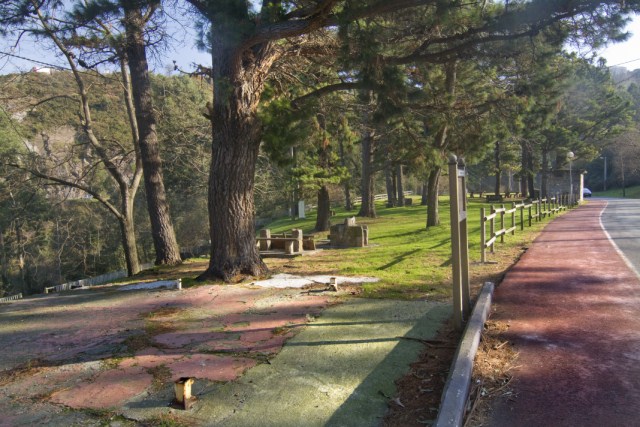 Llegamos al área de descanso de Los Castaños, donde existe un merendero, varios asadores y un pequeño estanque hecho aprovechando el hueco circular donde antaño daba vuelta la máquina del tren.