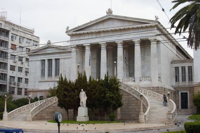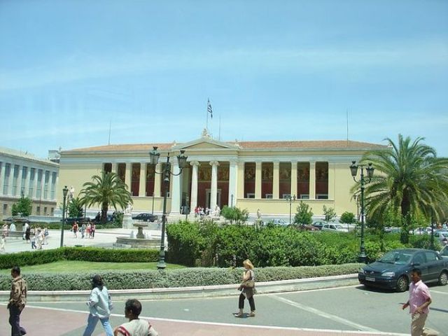 Bajando la calle Panepistimiou o Eleftheriou Venizelou, encontraremos cantidad de edificios neoclásicos que constituyen una etapa importante en la evolución arquitectónica de Atenas. El Museo Numismático, el Centro de Oftalmología, la Academia, la Biblioteca y la Universidad.