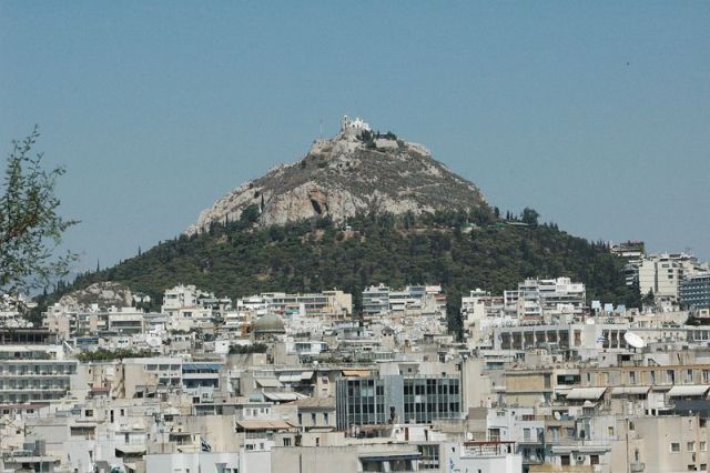 Al día siguiente visitamos La Colina del Lycabettus: Se sube en funicular desde la calle Aristipou en Kolonaki, hasta la capilla de San Jorge, de 277 metros de altura y con una vista panorámica de todo Atenas. La entrada cuesta 2€ la ida y 4€ la ida y vuelta.
