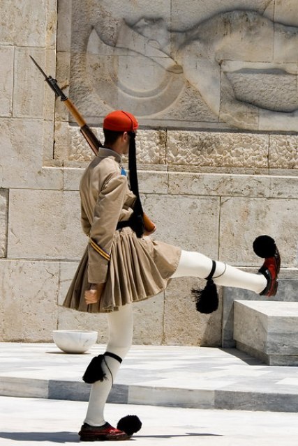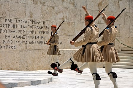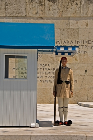 Continuamos nuestro paseo por el Parlamento Griego: Se encuentra situado en la plaza conocida como el cuadrado de Syntagma y fue construida originalmente como palacio para el rey Otto, el primer rey de Grecia y la reina Amalia. Su construcción duró seis años, entre 1836 - 1842. El segundo rey de Grecia, rey Georgios, también vivió en este palacio. Pero durante su reinado dos fuegos serios destruyeron el edificio. En 1924 el gobierno decidía ubicar el parlamento griego en el edificio.