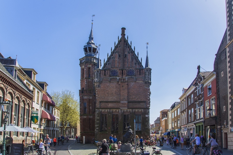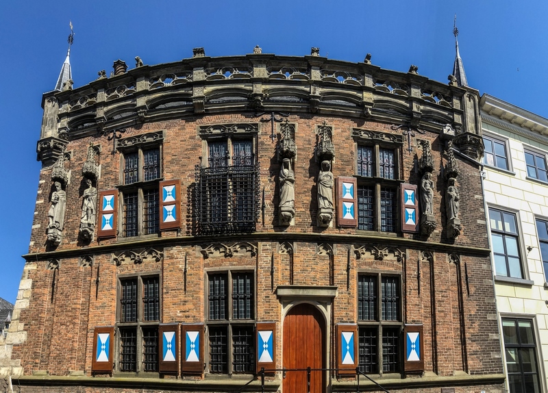 Portal de Koornmarkt. Antigua entrada de la ciudad orientada al río IJssel que probablemente tiene sus orígenes en el siglo XIV. En el siglo XV se le añadieron dos torres en las esquinas exteriores.