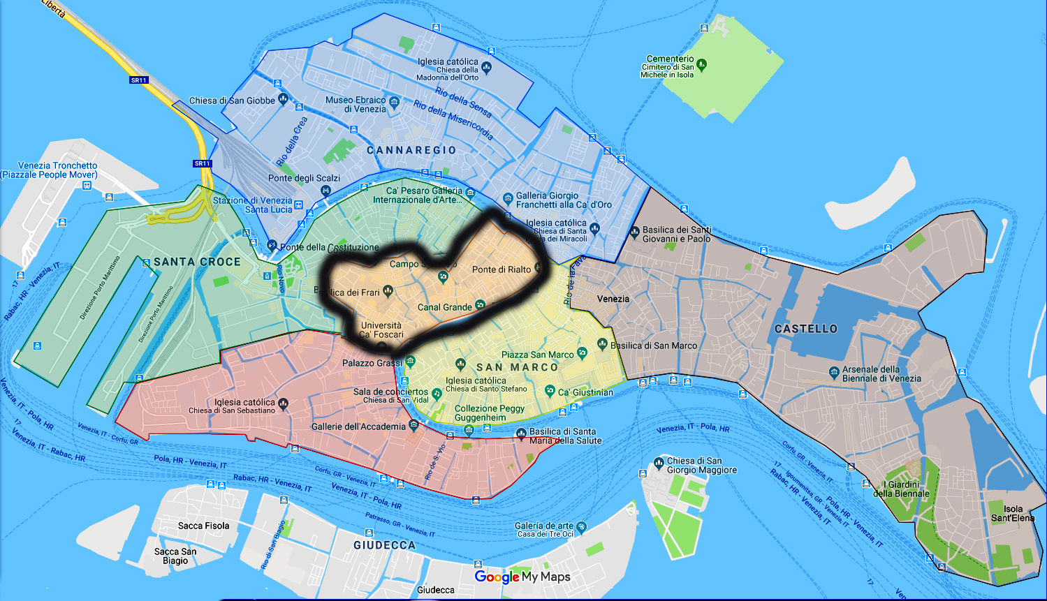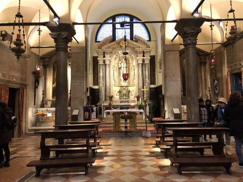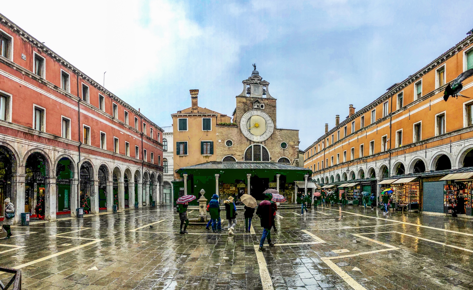 Iglesia de San Giacomo de Rialto: Esta es una de las iglesias más antiguas de Venecia, situada en el barrio de San Polo, con un exterior modesto y un interior interesante. Además, es tan pequeña que los lugareños en ocasiones la llaman San Giacometto (pequeño Giacomo). Nadie sabe con exactitud la antigüedad de San Giacomo di Rialto. Según cuenta la leyenda, puede que se construyera en el siglo V d. C.; mientras que los documentos más antiguos que aún se conservan dicen que se erigió en el siglo XII d. C. Desde entonces, la iglesia ha sufrido varias reformas, pero ninguna de ellas ha cambiado el diseño o el aspecto original de la misma. Supuestamente, también sobrevivió a un incendio devastador que redujo a cenizas toda la isla de Rialto. Hoy en día, la iglesia alberga un pequeño museo de instrumentos de cuerda medievales en su interior. Cuando realices tu visita, fíjate en el reloj gigante de la torre de la iglesia, que se añadió en el siglo XV y no da la hora correcta.