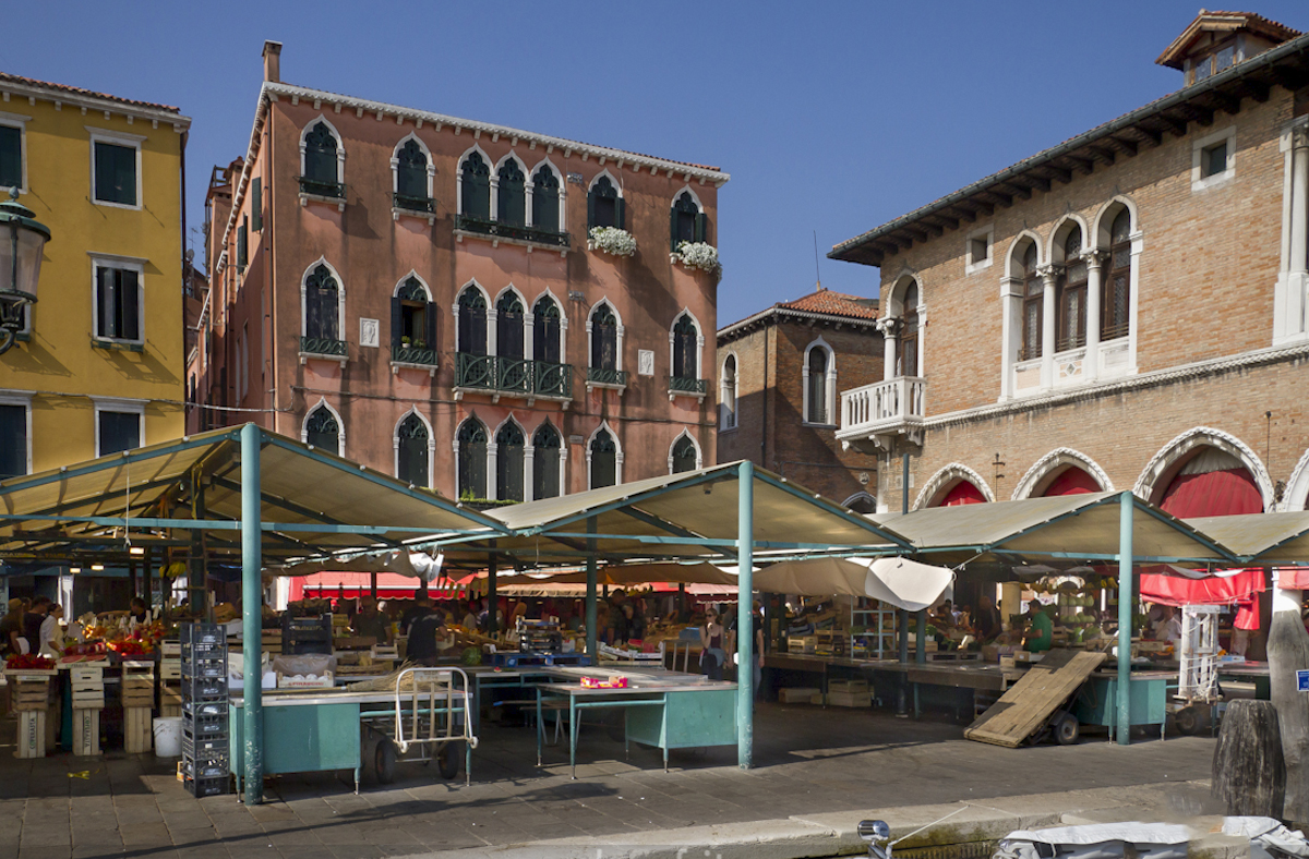 Mercado Rialto: Cruzando el Puente Rialto desde San Marcos llegaréis hasta el Mercado Rialto, un lugar especialmente colorido donde predominan las frutas y verduras. Como curiosidad, debéis saber que en este lugar ya existía un mercado desde el año 1097. El nombre, "Rivoaltus", significa terreno firme, libre de inundaciones. En 1514 un incendio asoló Rialto por lo que la mayoría de sus edificios pertenecen al siglo XVI. Las callejuelas del mercado llevan los nombres de los gremios que las ocuparon años atrás.