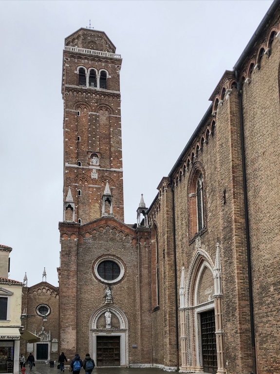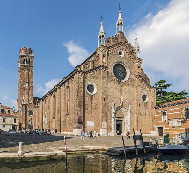La Basílica de Santa María Gloriosa dei Frari es una de las iglesias más grandes de Venecia, superada solamente por la Basílica dei Santi Giovanni e Paolo. Los Frari, como comúnmente se llama a la basílica, tiene dos caras completamente contrapuestas: el sencillo e inexpresivo exterior y el majestuoso interior. La construcción de la iglesia actual duró 100 años y se terminó a mediados del siglo XV. Su campanile es del siglo XIV y es el segundo más alto de Venecia.
