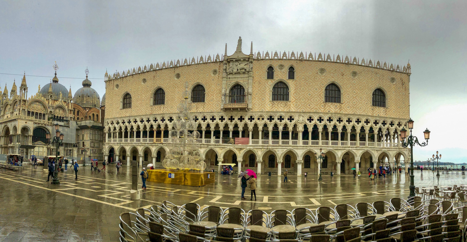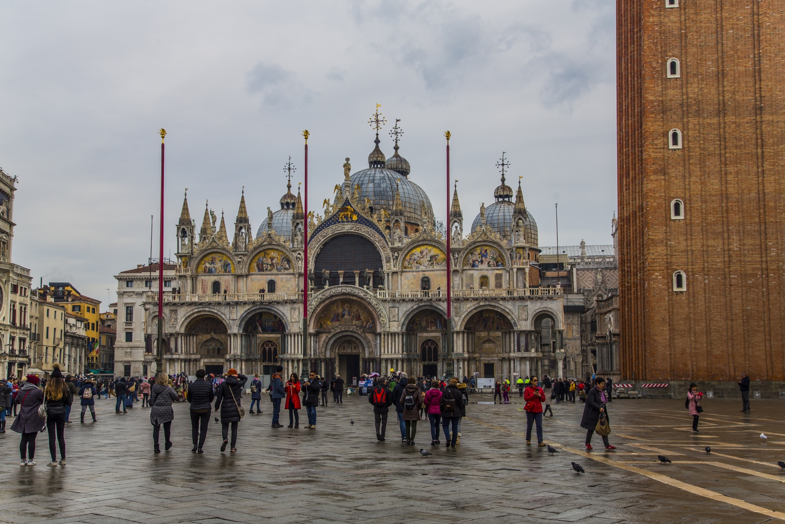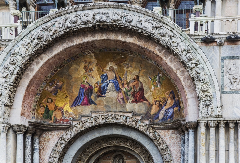 La Basílica de San Marcos impresiona tanto por su estética exterior como interior. De sus mosaicos exteriores tan solo uno es original, pero todos son auténticas obras de arte. Lo mismo pasa con los famosos caballos de San Marcos de su azotea. Los que hay actualmente son una réplica, pero los auténticos (traídos del hipódromo de Constantinopla) se pueden ver en el museo de dentro de la basílica de San Marcos. La entrada a la basílica de San Marcos es gratuita, pero si quieres subir a la azotea y ver el museo has de pagar entrada de 5€ una vez dentro. El interior de la basílica de San Marcos es una genialidad de mosaicos dorados. Los restos de San Marcos fueron traídos desde Alejandría.