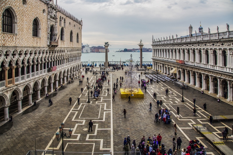 Palacio Ducal: Para nosotros es uno de los principales monumentos de Venecia junto con la Basílica de San Marcos. El palacio Ducal fue en sus inicios del siglo IX un castillo fortificado. Posteriormente pasó a ser la residencia de los duques. En el palacio Ducalse puede visitar su gran patio, la escalera de Oro, la sala de votaciones, la armería y los calabozos que llegarás a través del Puente de los Suspiros.