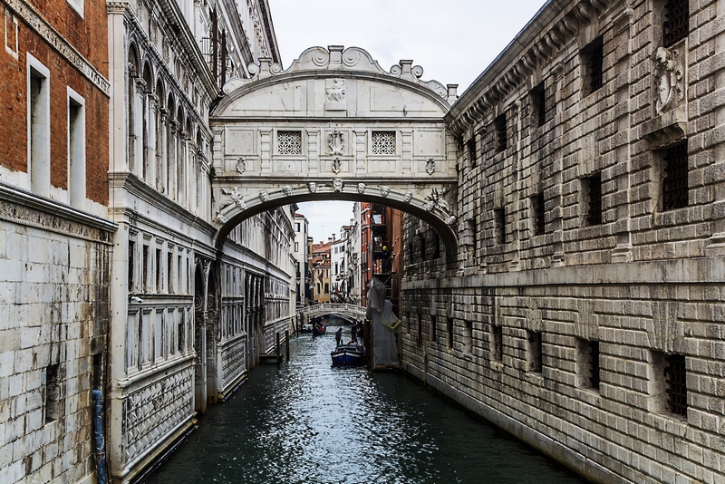 Puente de Los Suspiros: Este quizá sea el puente más famoso de Venecia y, de hecho, es uno de los símbolos de la ciudad. No hay folleto turístico, postal o selfie que se precie en el que no aparezca este puente. El Puente de los Suspiros es una construcción barroca del siglo XVII que se encuentra cruzando el Rio Di Palazzo. Ubicado cerca de la plaza de San Marcos, une el Palacio Ducal de Venecia con la antigua prisión de la Inquisición. Aunque te haga suspirar por su belleza, no creas que ése es el motivo del nombre del puente, sino que tiene que ver con algo mucho más triste y siniestro. En el siglo XIX, se dice que el prestigioso literato Lord Byron bautizó a este monumento con este nombre por los suspiros de dolor que soltaban los presos que cruzaban el puente desde los Tribunales de Justicia, a sabiendas de que pasarían el resto de sus días en los calabozos. Se dice que sus suspiros resonaban en el abovedado puente mientras veían el cielo por última vez.