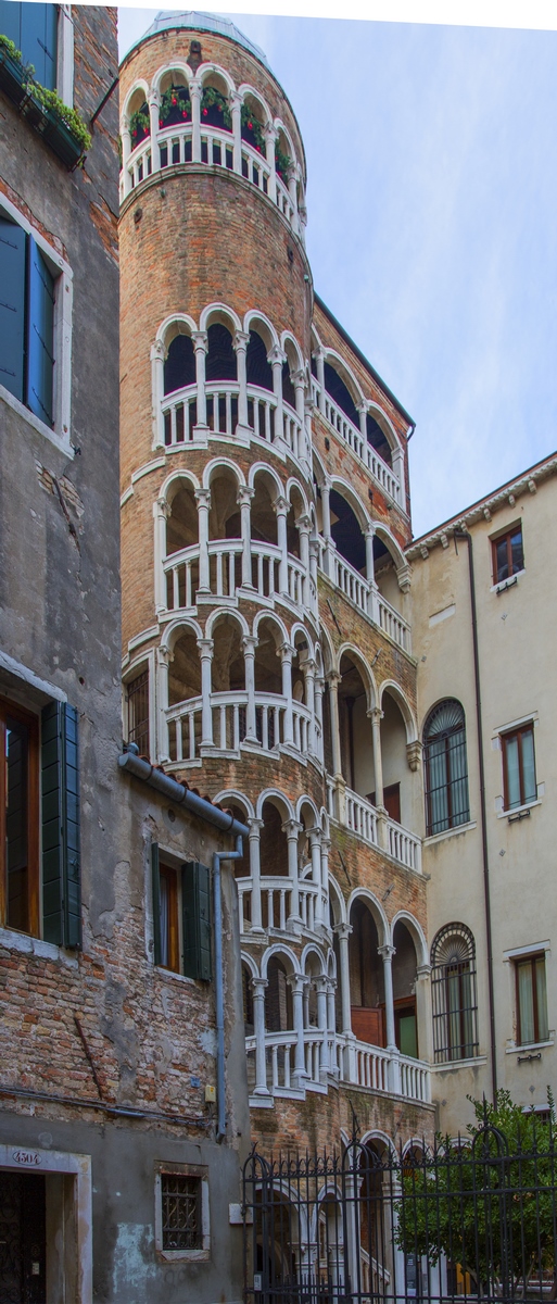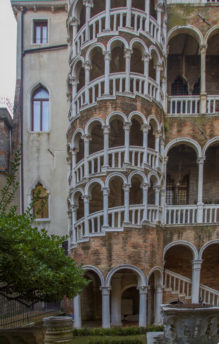 Palacio Contarini del Bovolo: Es un pequeño palacio de Venecia, muy conocido por su escalera de caracol exterior, que tiene un gran número de arcos, y que es conocida como la Scala Contarini del Bovolo. El palacio data del siglo XV, construido por la familia Contarini y está, al parecer, en no muy buen estado de conservación. La escalera de caracol conduce a una galería, desde donde se ofrece una encantadora vista panorámica sobre algunos de los tejados de la ciudad.