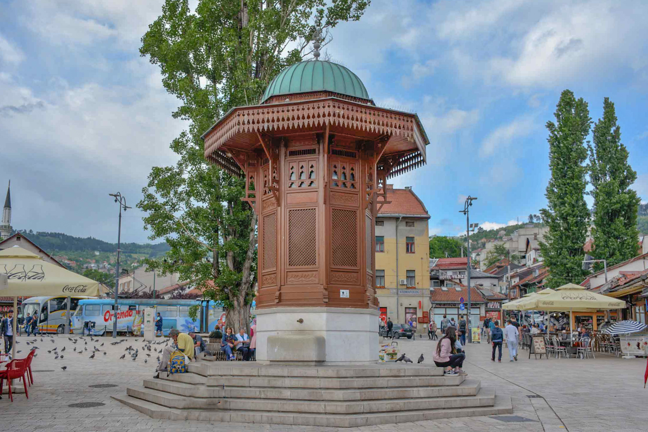Algo obligado que hacer en Sarajevo si quieres volver es beber agua de la fuente Sebilj. Así lo dice la leyenda, igual que si quieres volver a a Roma hay que tirar una moneda en la Fontana di Trevi. La fuente está situada en una placita a la entrada del casco antiguo y es un lugar muy concurrido. Eso sí, tendrás que hacerte un hueco entre las palomas que suelen revolotear por allí en busca de comida.