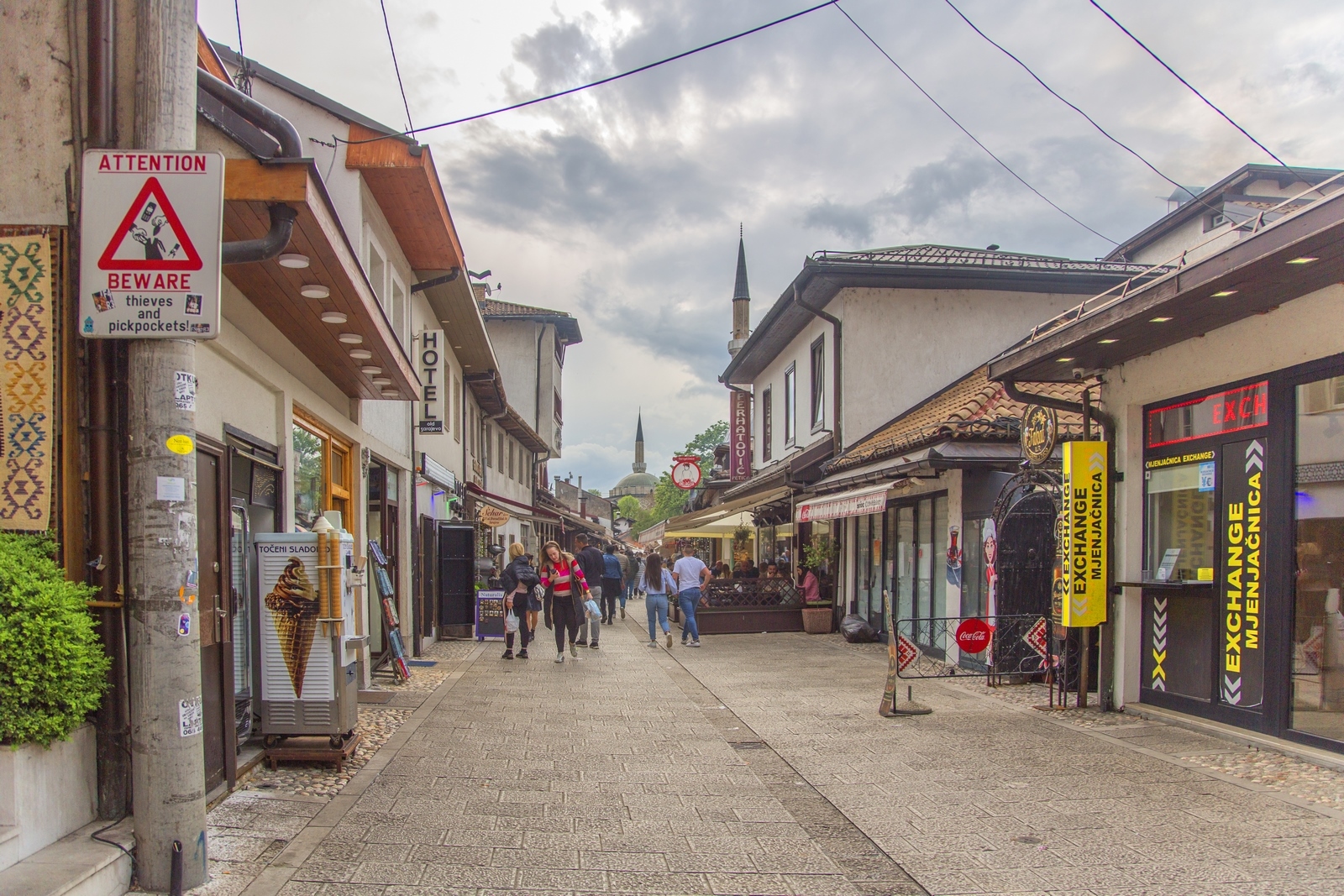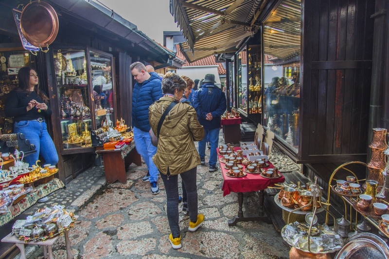 El casco antiguo de Sarajevo mantiene su estructura otomana original del siglo XV y eso lo convierte la zona más encantadora de la ciudad. Está formado por calles estrechas y adoquinadas con multitud de tiendas a los lados. Encontrarás principalmente souvenirs y artesanías, pero también hay muchas cafeterías y restaurantes.