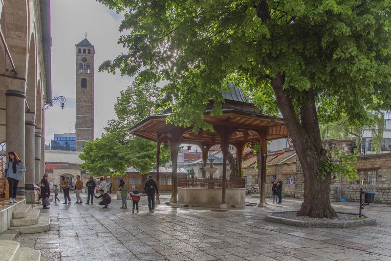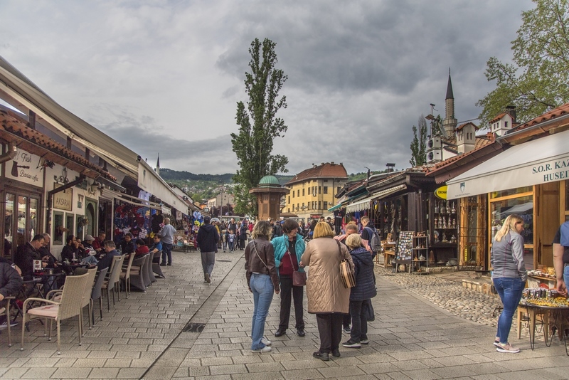 Bascarsija es el corazón de la ciudad, el barrio antiguo con su Torre del reloj, sus bazares, mezquitas y madrazas como las de Gazi Husrev Bey y Emperador entre otras. También con la plaza del mismo nombre que tiene La Sebilj, la fuente de mármol y madera, lugar de encuentro por excelencia.
