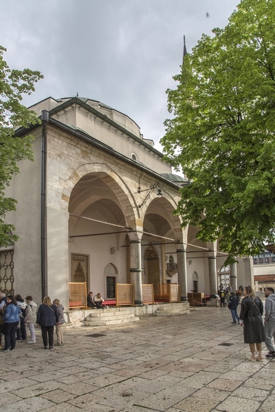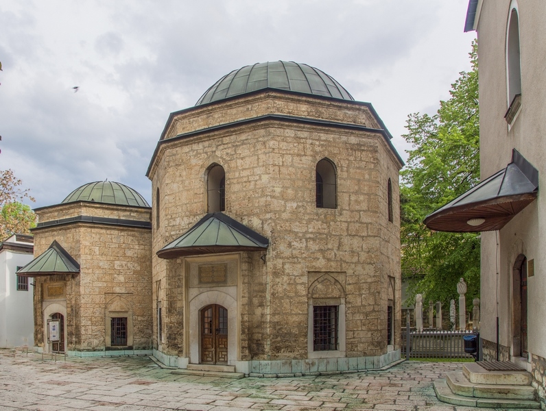 Mezquita Gazi Husrev-BegElegante y soberbia, la Mezquita Gazi Husrev-Beg, la más importante de la capital y la más grande del país, es una de las estructuras otomanas más características de Bosnia y Herzegovina. Gobernada por una cúpula principal y un sólo minarete de más de 45 metros de altura, se trata de uno de los símbolos mas destacables de Sarajevo, visible desde innumerables puntos de la ciudad. Durante las horas de oración permanece cerrada a los turistas.