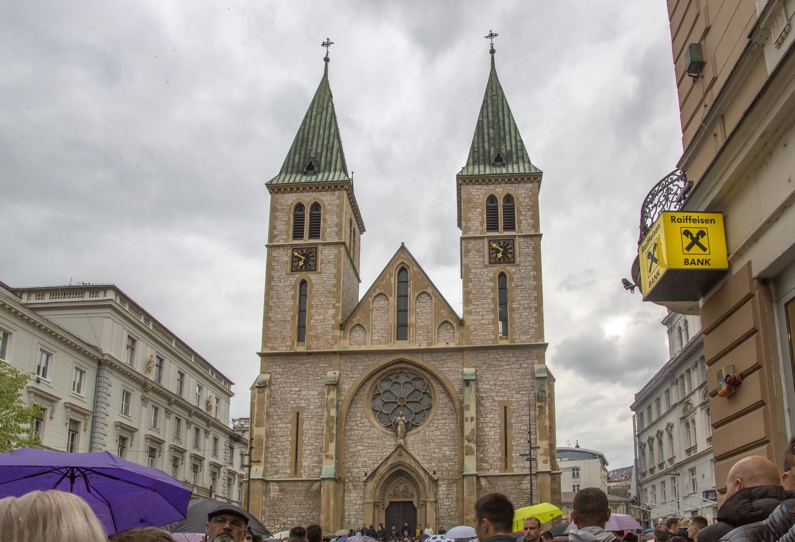 En esta misma avenida se puede ver la imponente catedral cristiana del Sagrado corazón de Jesús. Fue construida durante la época austrohúngara siguiendo un estilo neogótico. Durante la guerra de Bosnia quedó dañada pero se pudo reparar y ahora es uno de los edificios más característicos.