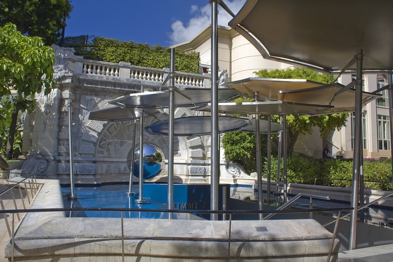 Esta es la terraza del teatro Princesa Grace. Situado en la famosa Avenida de Ostende, con vistas al puerto de Hércules. Ofrece unas vistas espectaculares de la ciudad, el puerto, los rascacielos y la roca. (foto inferior)