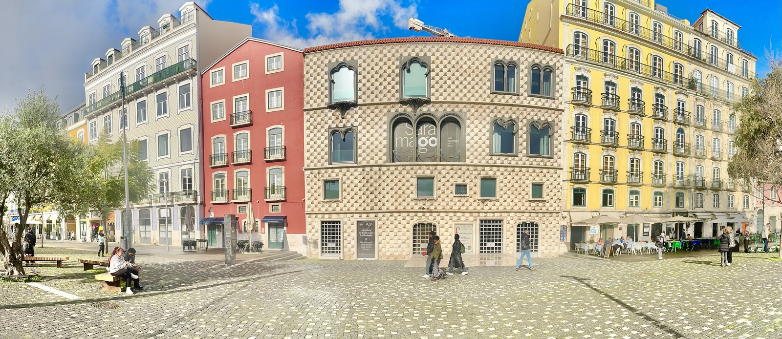 La Alfama es un histórico barrio de Lisboa (Portugal) formado por las freguesias de São Miguel, Santo Estêvão y São Vicente de Fora. Queda más elevando respecto a la Baixa Pombalina y frente al Barrio Alto. Dominando la Alfama se encuentra el Castillo de San Jorge de Lisboa, fortaleza que fue palacio real hasta el siglo XVI. Además del castillo los principales monumentos de la zona son la Catedral de Lisboa, la Iglesia de San Esteban y la Iglesia de San Vicente de Fora. Desde los miradores de Portas do Sol y el mirador de Santa Luzia se accede a una panorámica de la ciudad. Encontrarás la Casa dos Bicos en la parte baja del barrio de Alfama, frente al Tajo y muy cerca de la Plaza del Comercio. Se la llama así por su característica fachada de piedras talladas en forma de puntas de diamante o picos (bicos). Otro elemento curioso de su fachada son sus puertas y ventanas, de estilos y tamaños diferentes. Como tantos otros edificios de Lisboa, sufrió desperfectos en el terremoto de 1755 y perdió el piso superior, por lo que fue restaurada. Curiosamente, durante la mayor parte del siglo XX fue un almacén de bacalao La Casa dos Bicos se trata de un antiguo palacete del XVI que perteneció al virrey de la India Alfonso de Albuquerque. De aire renacentista, junto a ella reposan bajo un olivo las cenizas del escritor José Saramago; en efecto, el edificio es la sede de la Fundación José Saramago.
